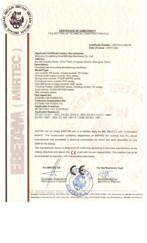在2009年7月,東蒙路橋機械有限公司獲得了“CE”認(rèn)證。2009年8月,首臺貼有“CE”標(biāo)志的上海東蒙路橋生產(chǎn)的機器出口利比亞。